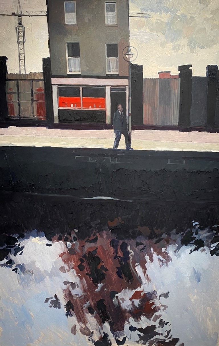 Painting: Hector McDonnell, Quayside, Dublin, 1980, oil on canvas, 76,2 x 50,8 cm