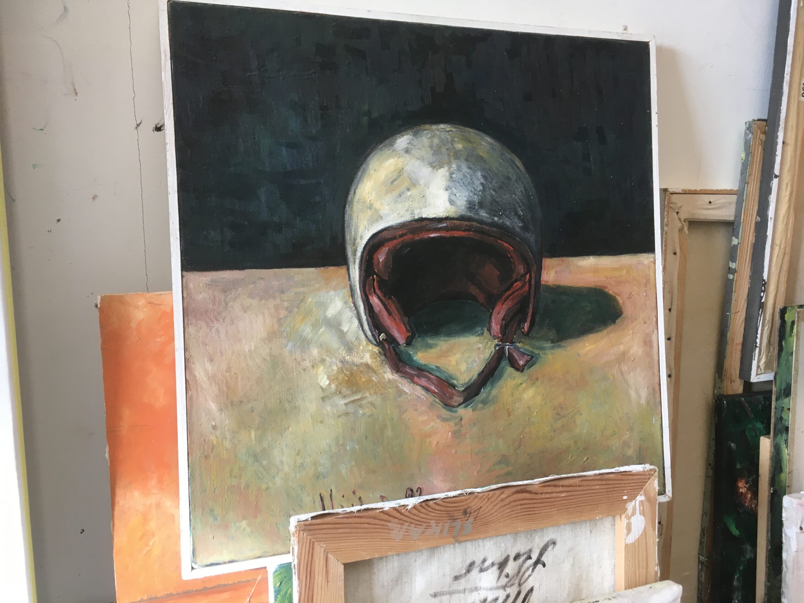 Painting: Velimir Ilišević, Helmet, 1993, oil on canvas, 62 x 62 cm